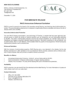 NEW! All RACS Animal Flooring now includes durable protection against E. coli, Salmonella, and other microbials!